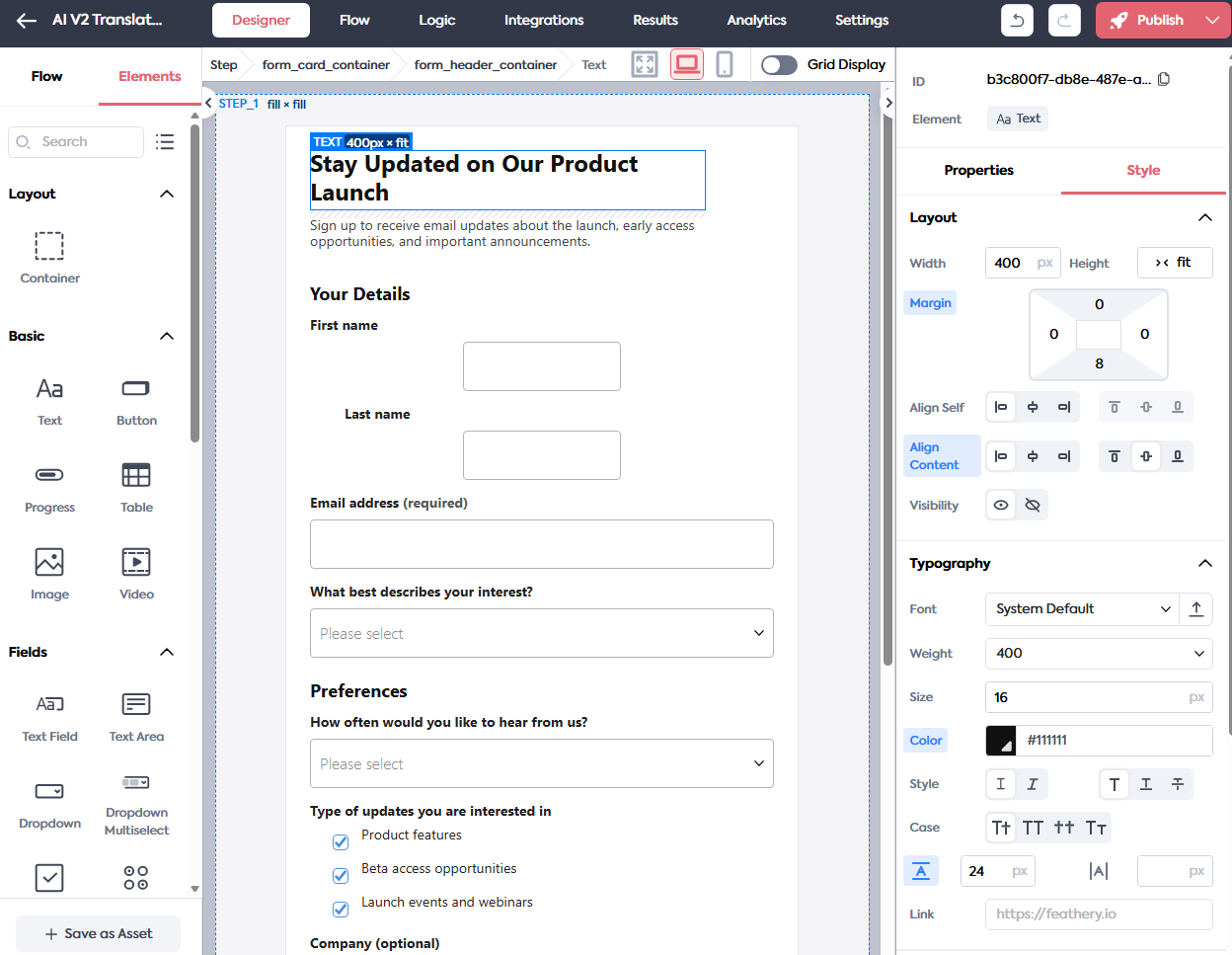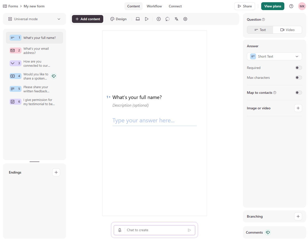 Once generated, the form opens in Fillout's full visual editor, where you can refine it. That extra step gave me more control over the final product than tools that just generate a form directly from your prompt.