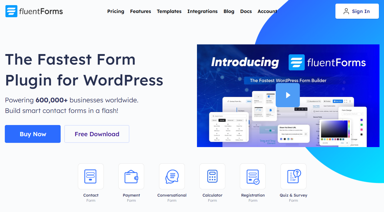 What it does: Fluent Forms is a WordPress plugin that builds forms with drag-and-drop, AI generation, conditional logic, payments, and conversational form layouts.