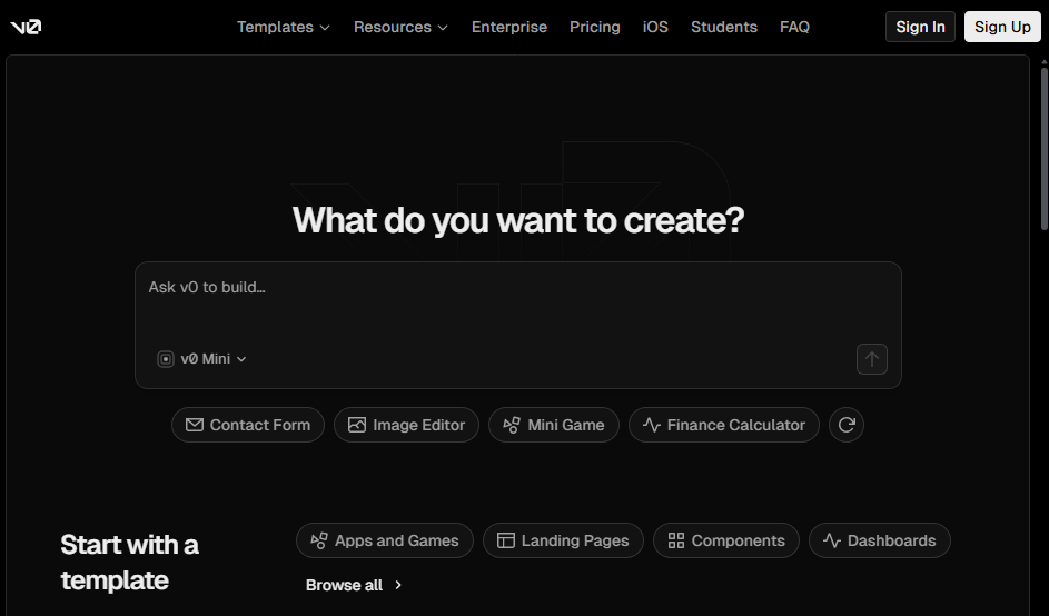4. v0 (by Vercel): Best for design-first UIs