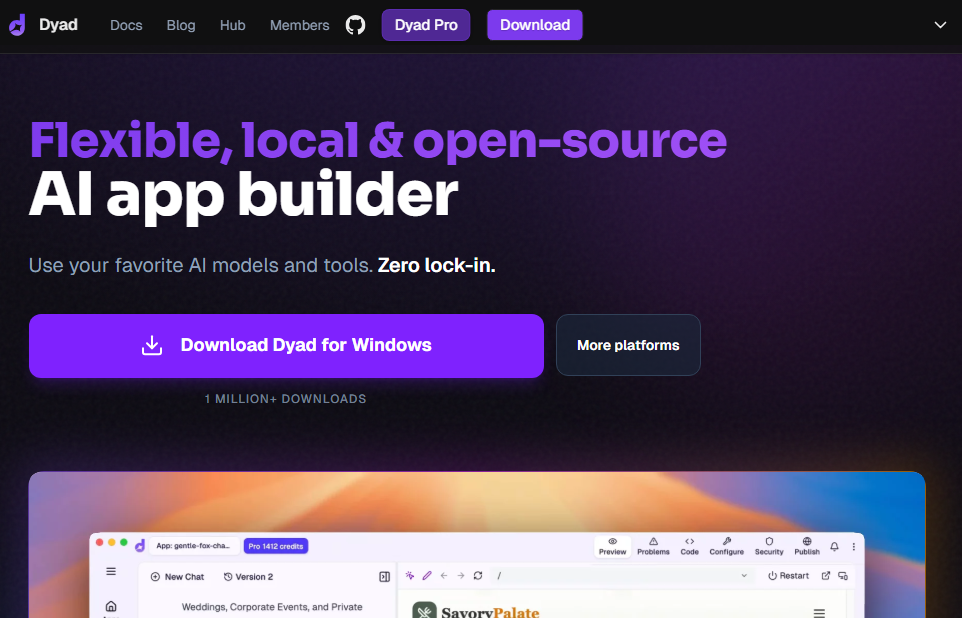 - Local-first and open-source: Dyad runs entirely on your own computer (Mac, Windows, Linux) and is open-source, meaning the code is transparent and modifiable.