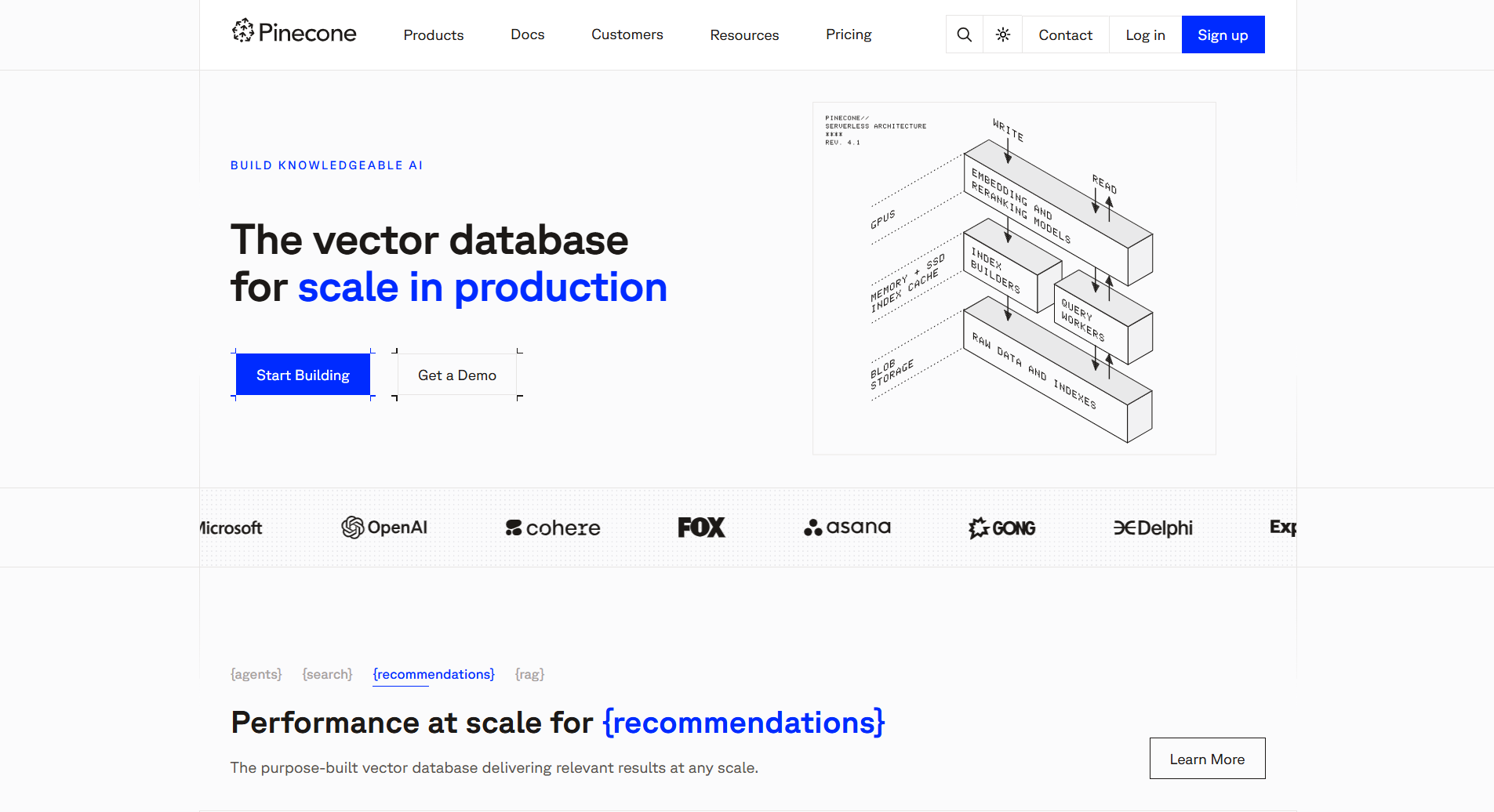 - Built for billion-vector scale: Handles tens of billions of vectors with independent scaling of storage and compute.