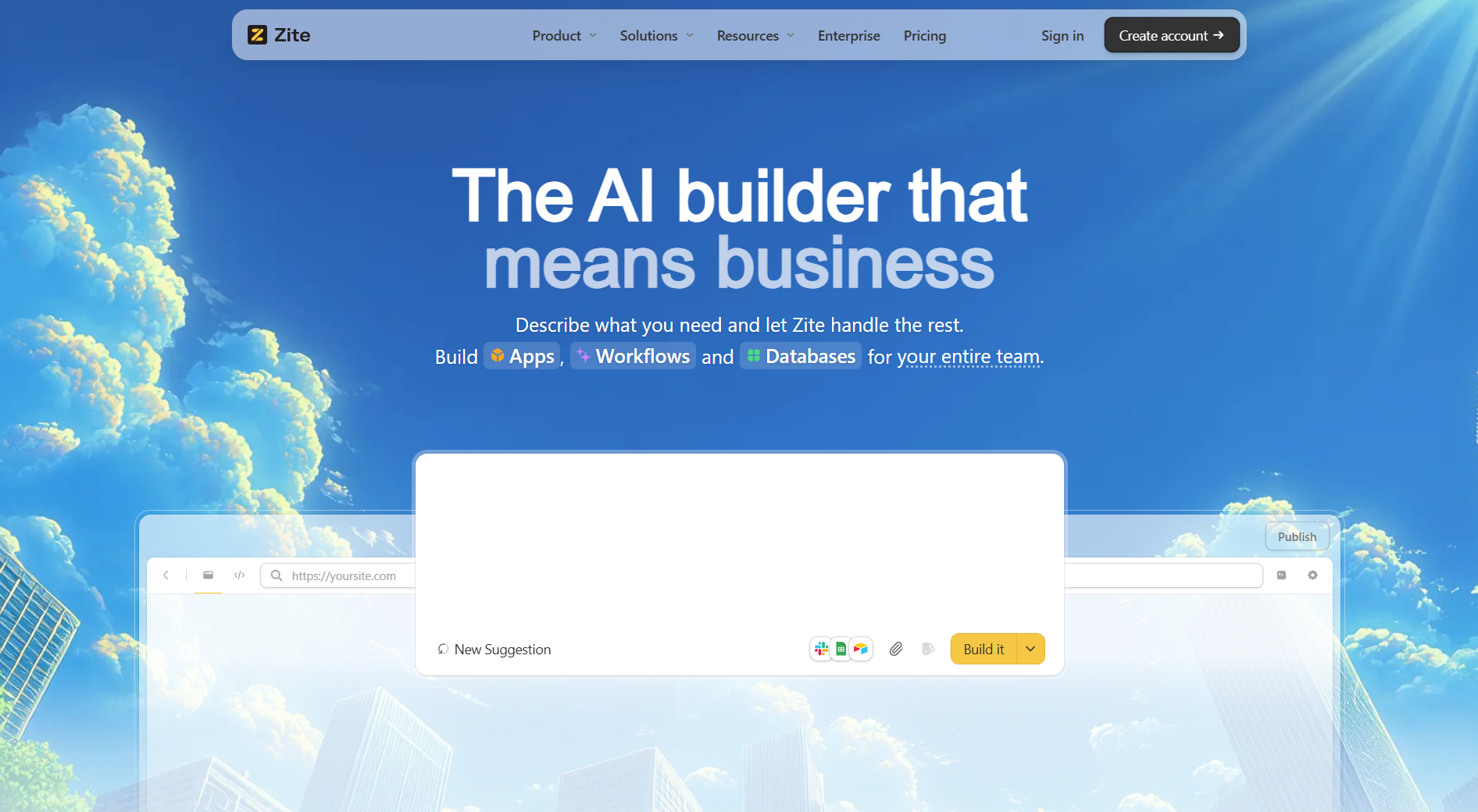 - What it does: Zite is an AI-powered database and app builder that generates tables, fields, and logic from a natural language description. Teams get a spreadsheet-like database they can see and edit, plus a working app, without stitching separate tools together.