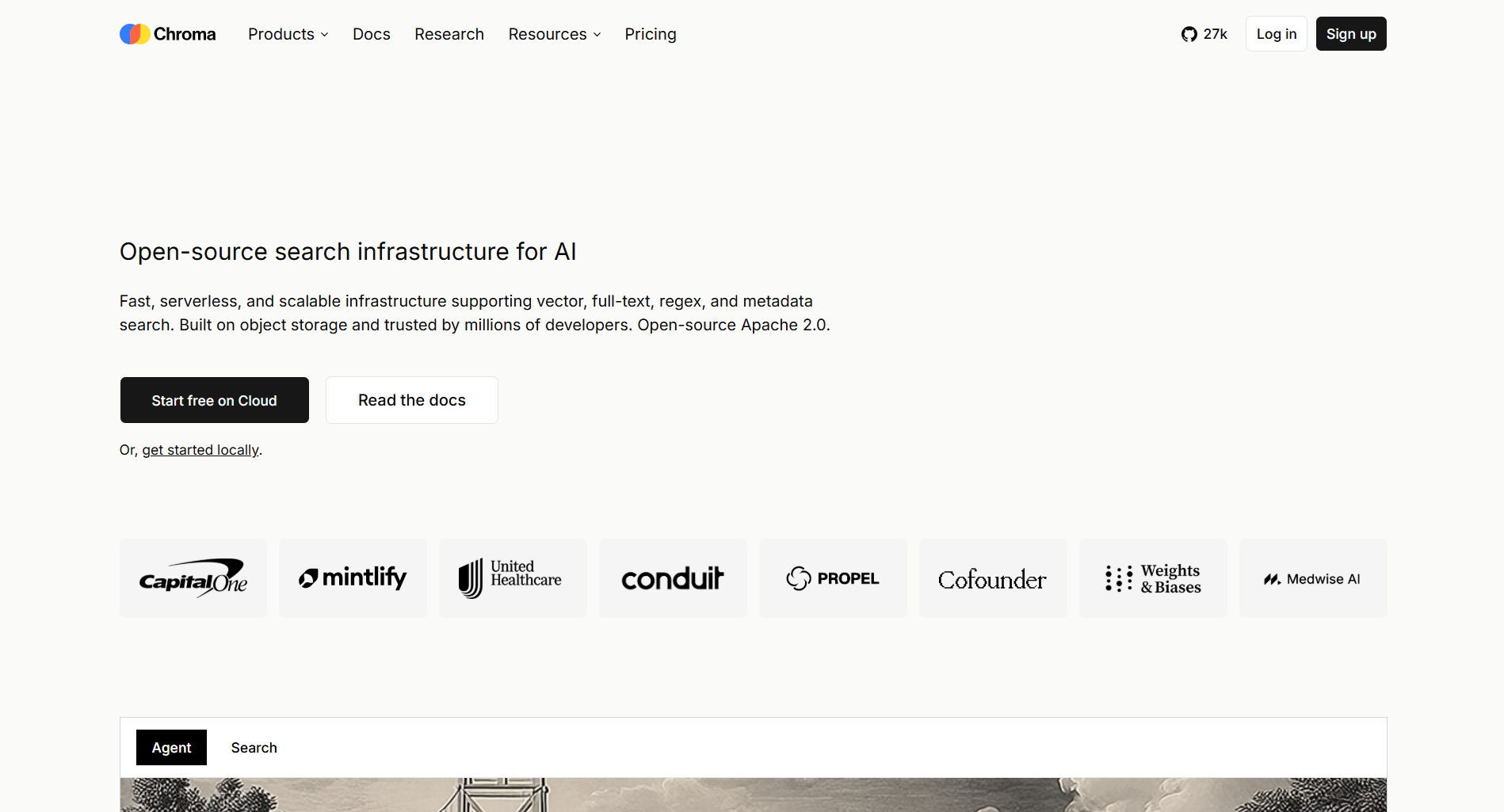 - What it does: Chroma is an open-source vector database with support for vector, full-text, and metadata search built on object storage with serverless scaling.