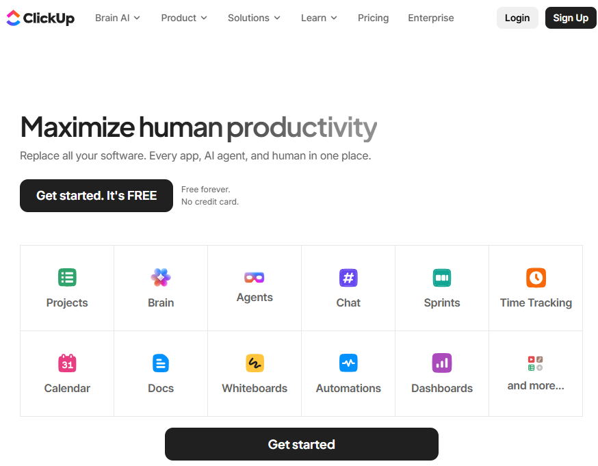 - Tasks and project management: Create tasks with assignees, subtasks, dependencies, and multiple views. You can organize work in a hierarchy of Spaces > Folders > Lists > Tasks.