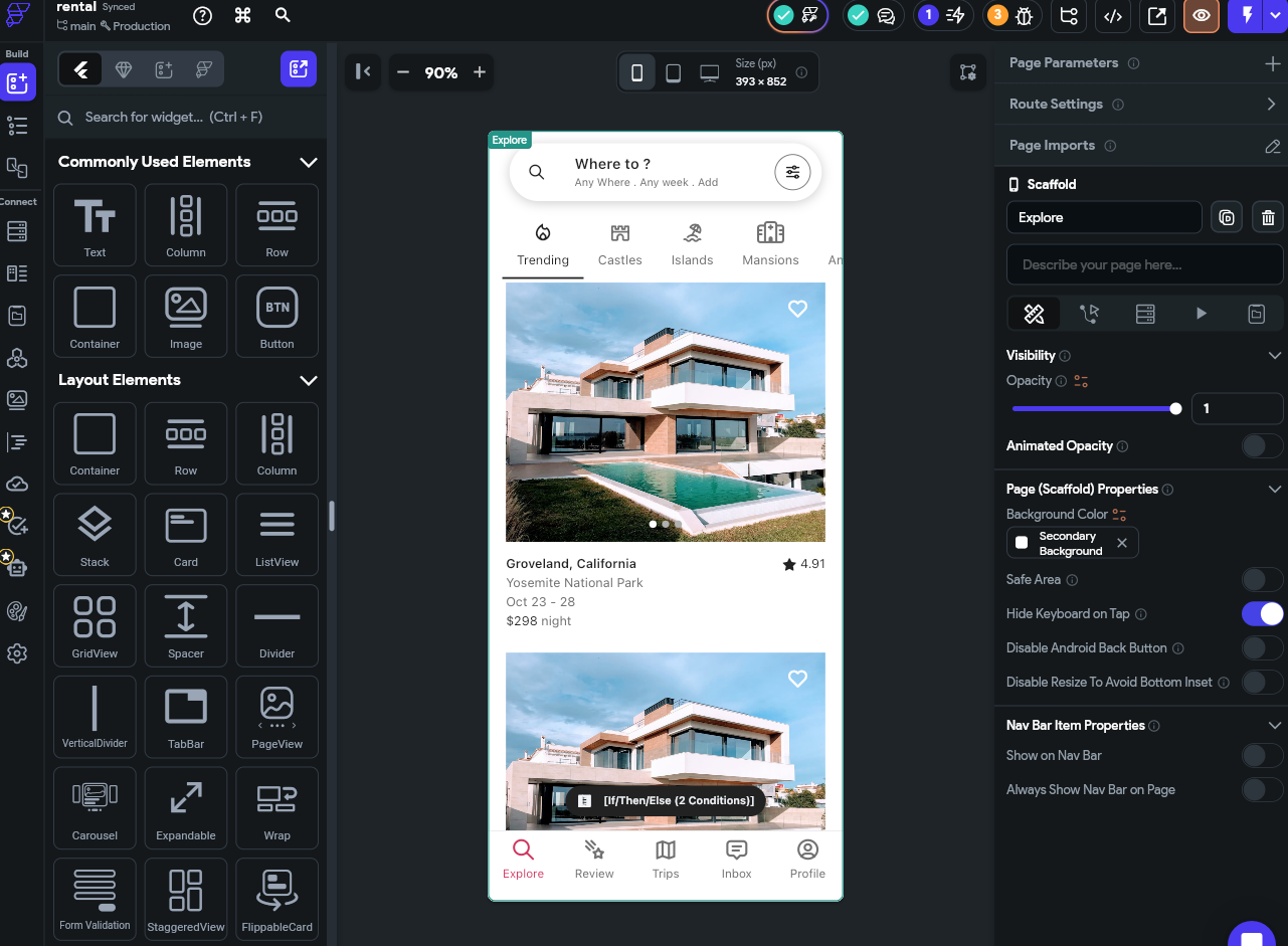 FlutterFlow gives you a drag-and-drop builder with lots of prebuilt components. This gives you detailed control over how your app looks and works, but it isn’t as beginner-friendly as tools like Zite or Glide. The interface has many panels and settings, and once I moved beyond simple screens, building new features required learning how the platform’s underlying system works.