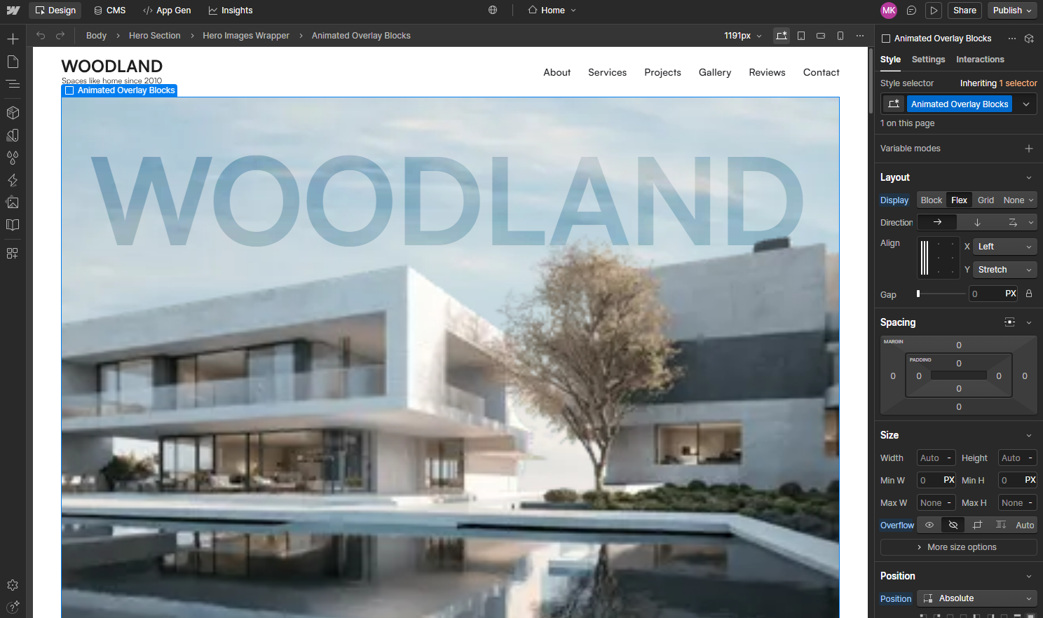 Webflow felt a bit like designing a website in Photoshop. You can customize nearly every element, including layout, spacing, fonts, animations, and interactions.