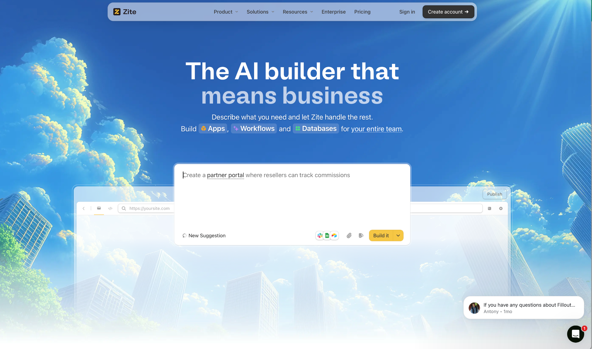 What it does: Zite builds business apps from a plain English description. Database, login, and hosting included from the start.