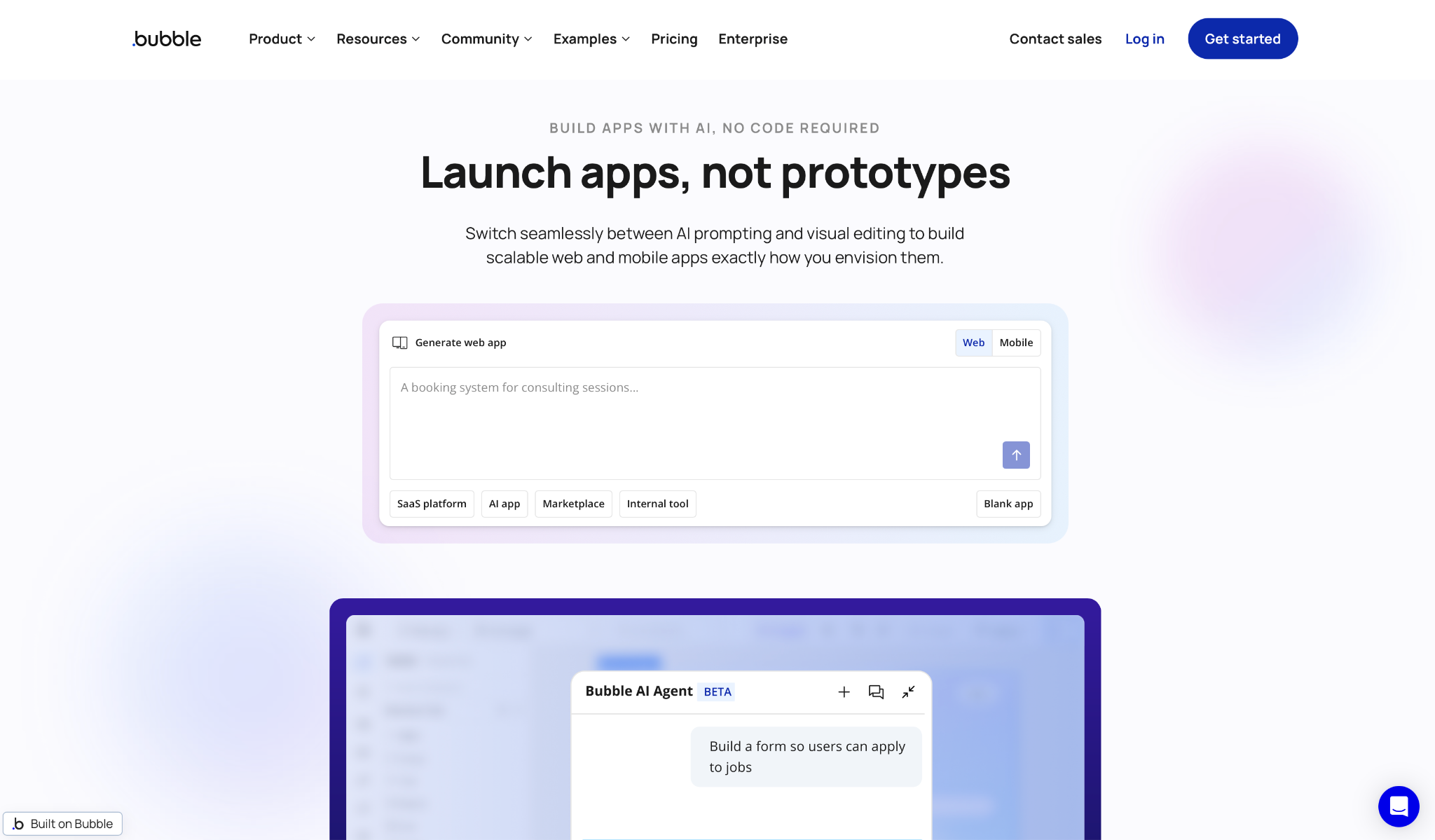 What it does: Bubble lets you design, build, and launch full web and mobile apps through a drag-and-drop editor, with database, logic, and hosting included.