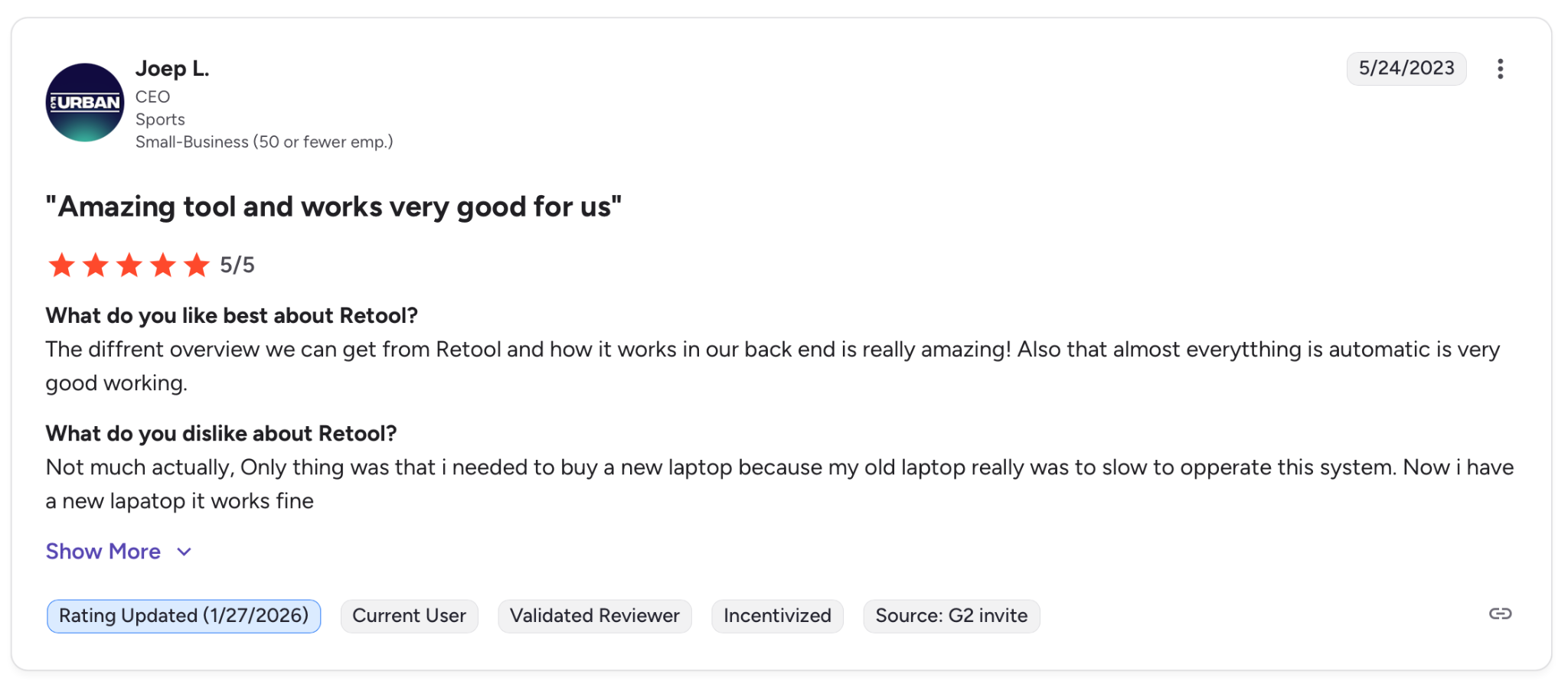 "I like Retool because it streamlines our backend product processes and makes it easier to manage and prepare products so they’re ready for customer-facing platforms." — Zethu F. G2