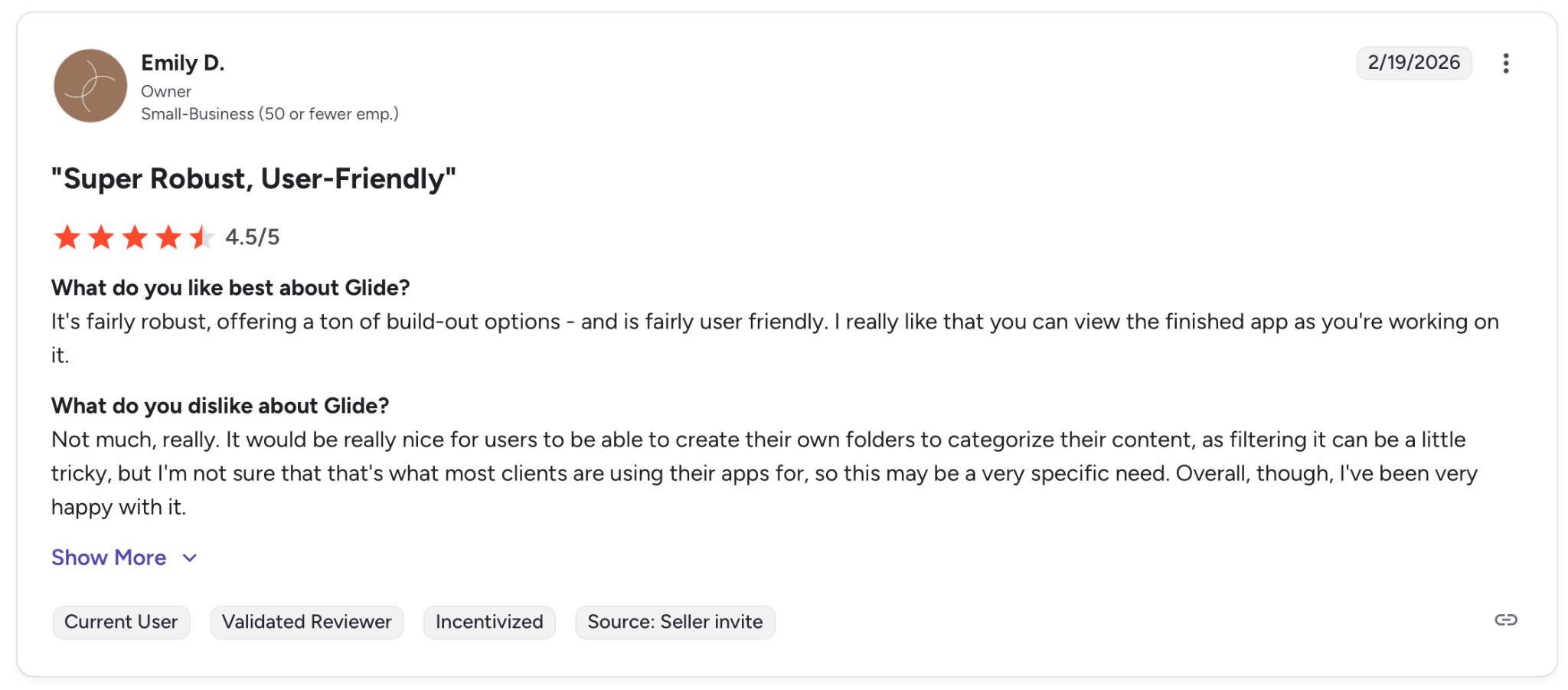 - Choose Glide if your data already lives in Google Sheets or Excel and you need an app on top of it this week. If that structure changes often, expect friction.