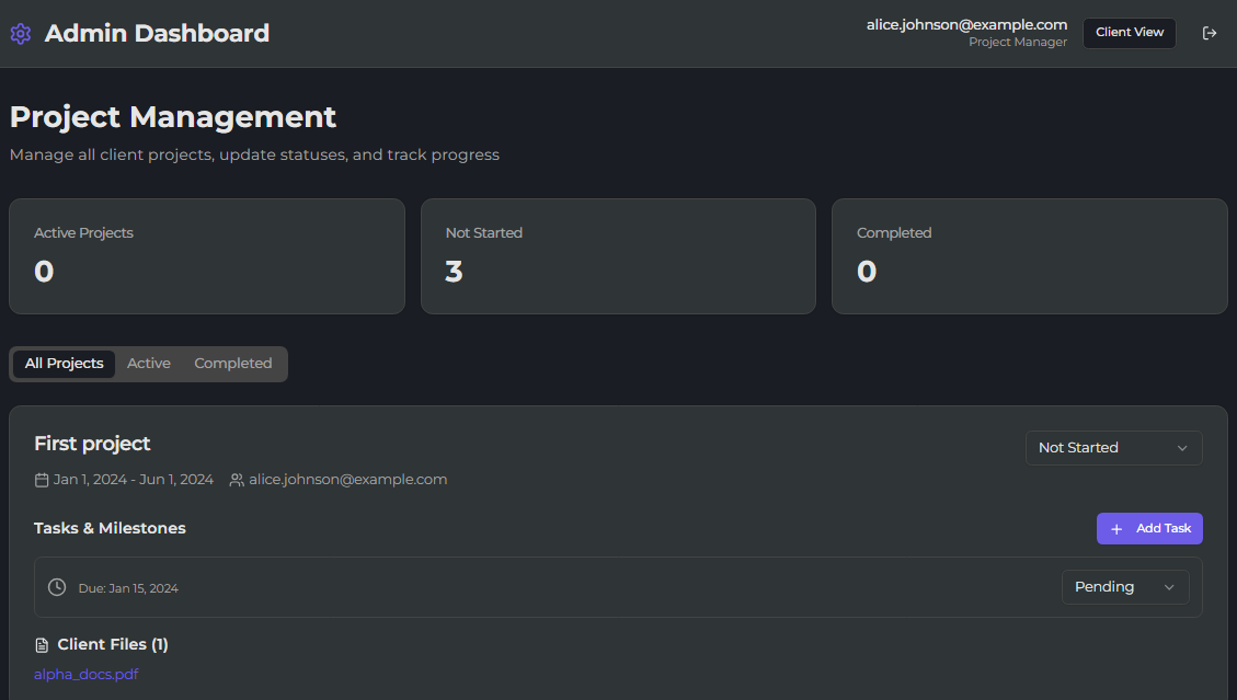 The key difference between a client dashboard and an internal dashboard is access. Clients only see their own data. Your team sees everything and can edit it.
