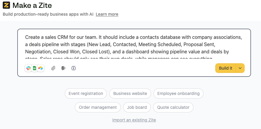 For this guide, I'll walk through building a production-ready custom CRM in Zite.