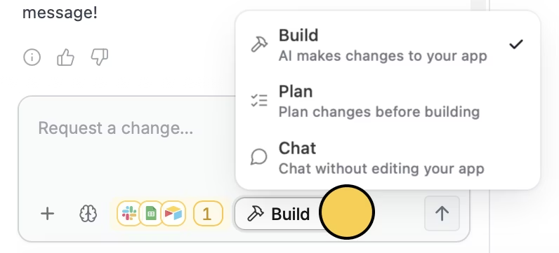 - Chat mode: A read-only conversation where you can ask Zite questions and get suggestions about your app without changing it