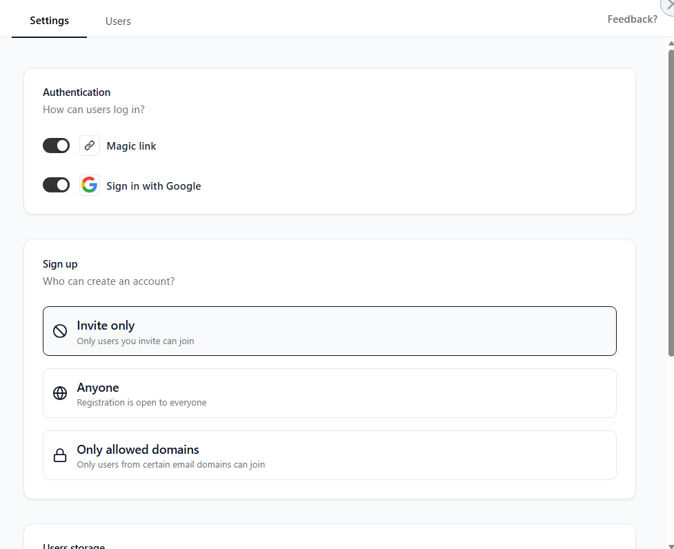 - Authentication that just works: Adding secure logins takes one step. Magic links, Google login, and SSO are built in. It also supports granular permissions, audit logs, and is SOC 2 Type II compliant.