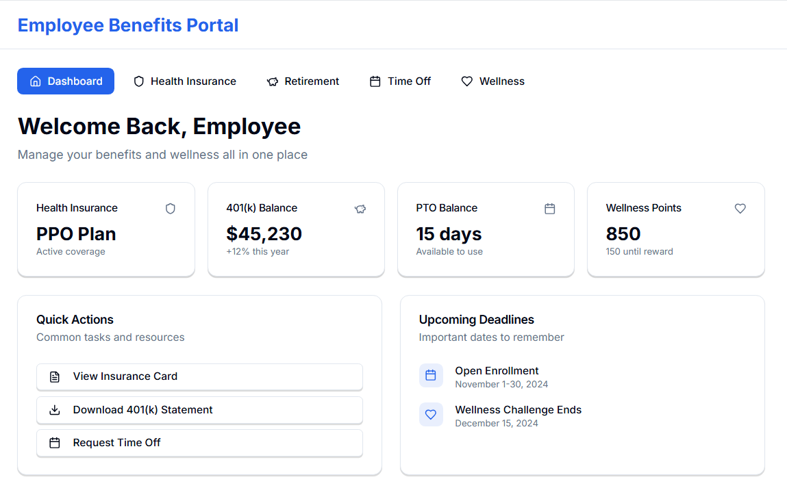 You can also integrate wellness programs into the same portal. Employees might find mental health resources or track wellness points that earn rewards.