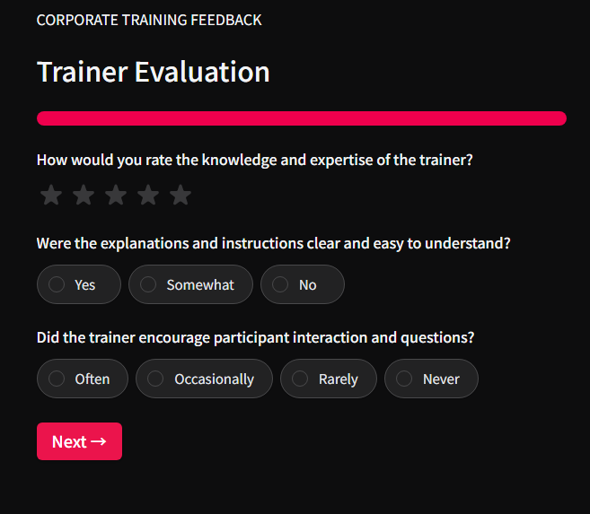 When to use it: Immediately after any corporate training program, workshop, or e-learning module.