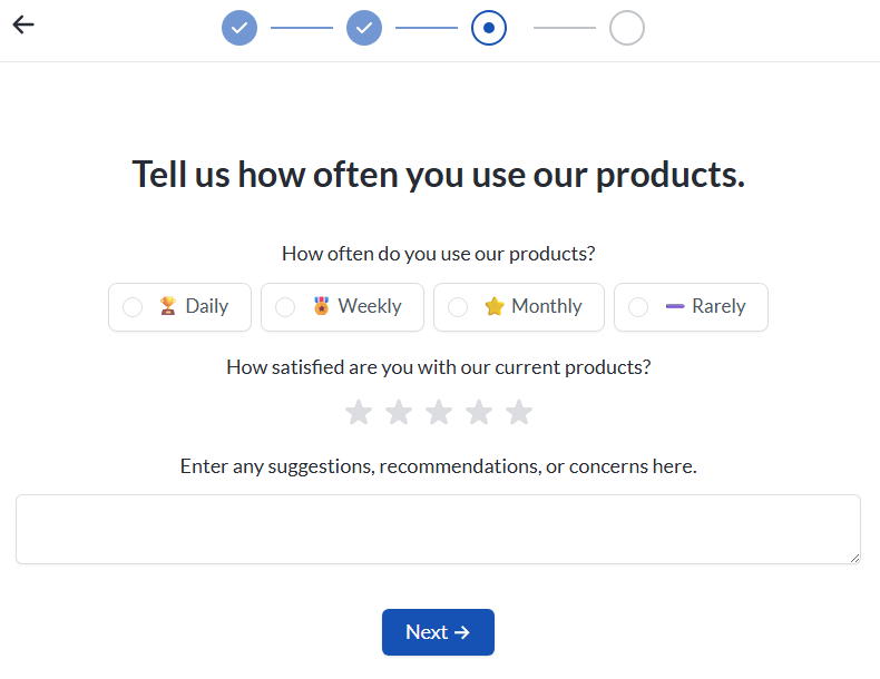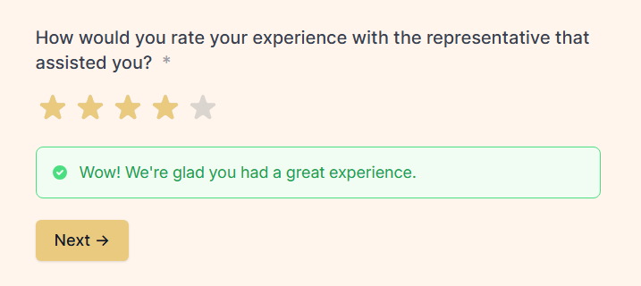 Use conditional logic to keep forms relevant. If someone rates their experience a 4 or 5, skip the "what went wrong?" question. If they select billing issue as their reason for contacting support, show follow-up questions specific to billing.