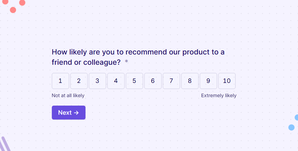- Ask about one thing at a time: "How would you rate our pricing and customer support?" forces people to combine two unrelated opinions into one answer. Split them into separate questions.
