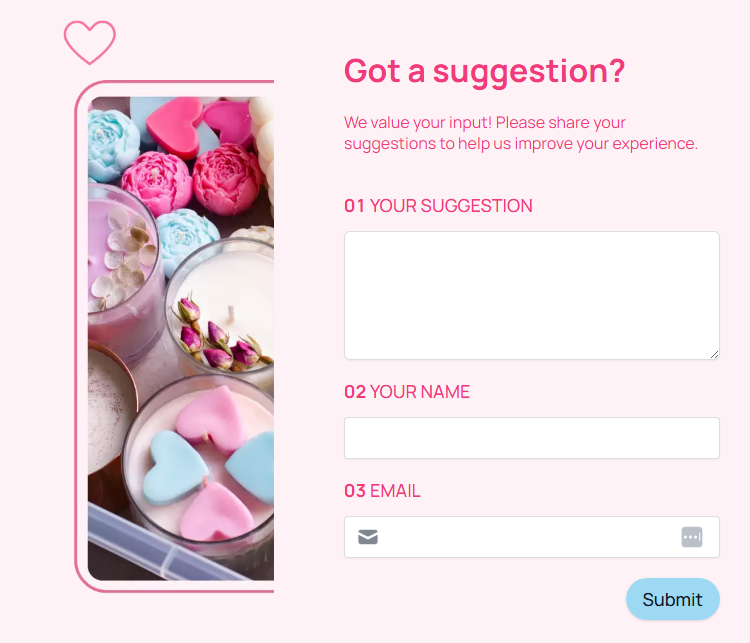 Website feedback forms help you understand how visitors experience your site. You can gather data on what's working, what's confusing, and what's driving users away. They can be triggered by exit intent, embedded on specific pages, or presented as floating widgets.