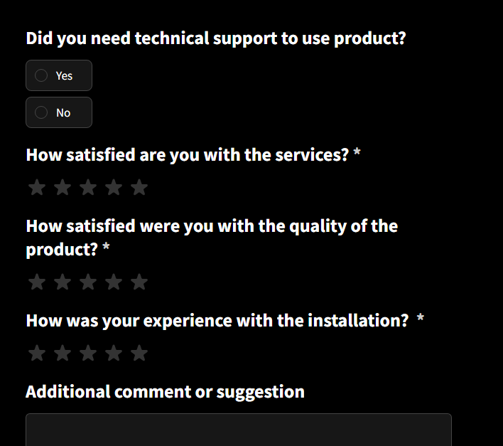 Each feedback form will need different types of questions, depending on the kind of data you want to collect.