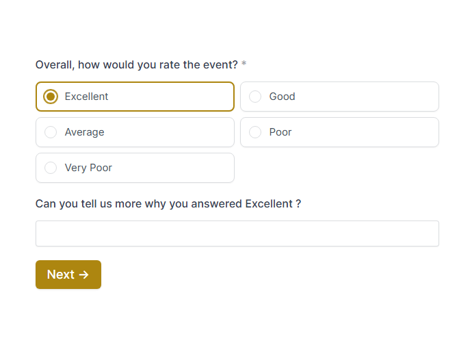 Event feedback forms are distributed post-event to gather attendee opinions on everything from content quality and speaker performance to logistics, venue, and overall satisfaction. Event organizers rely on this data to improve future events and demonstrate ROI to sponsors.