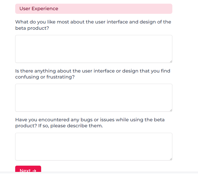 - User expectation forms: Understand what users expect from your product or service before or during their early experience with it.
