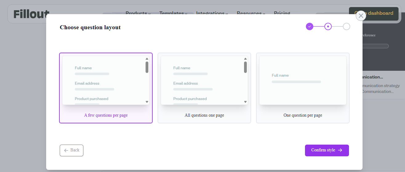 Next, choose a question layout from options such as: