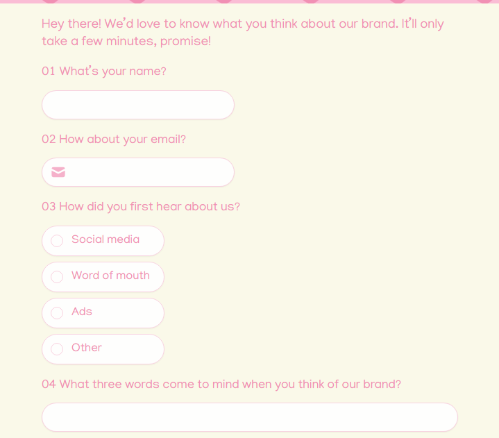 - What words or feelings come to mind when you think of our brand?