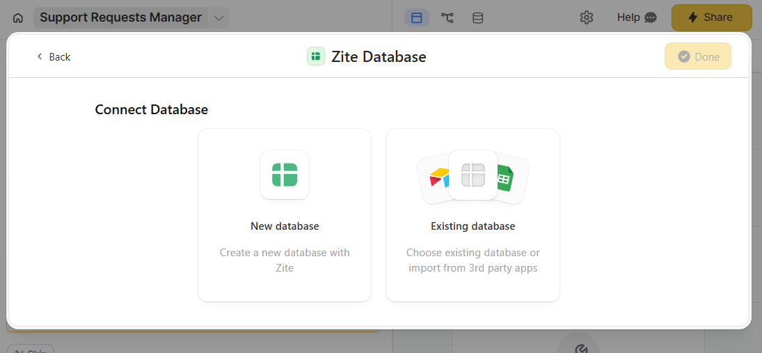 - Existing database: Connect an existing data source. Zite supports native integrations with Airtable and Google Sheets if you have historical data to work with.