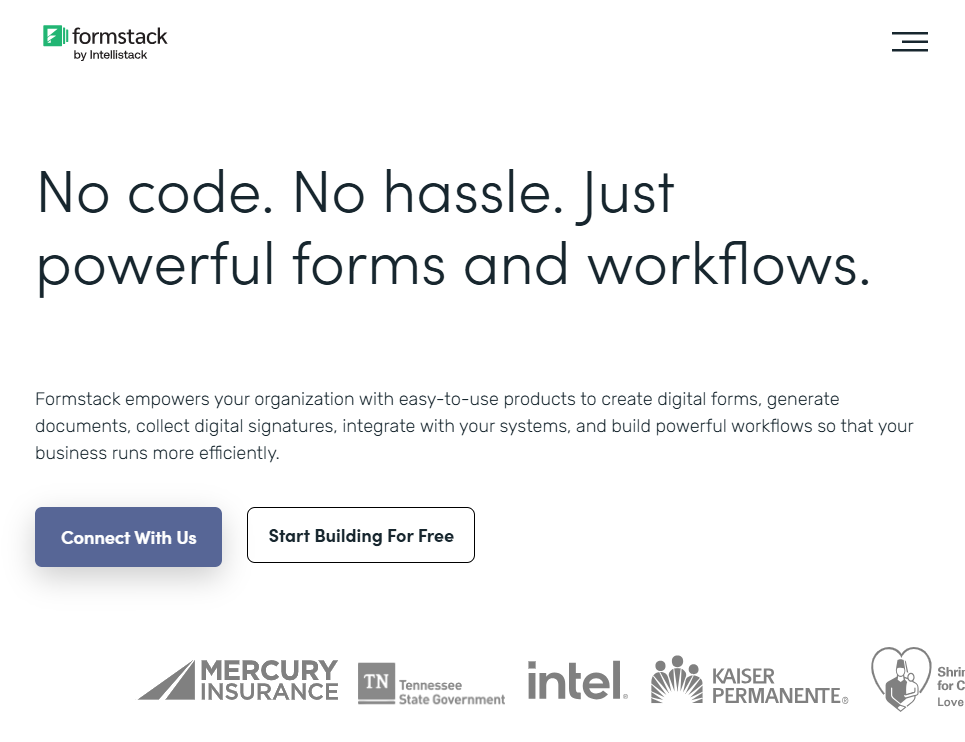 Formstack positions itself as a form builder that also focuses on workflow automation. It’s designed less for marketing forms and more for operational use cases like internal requests, regulated data collection, and document-heavy processes.