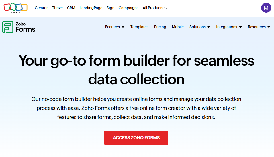 5. Zoho Forms: Best for Zoho ecosystem users