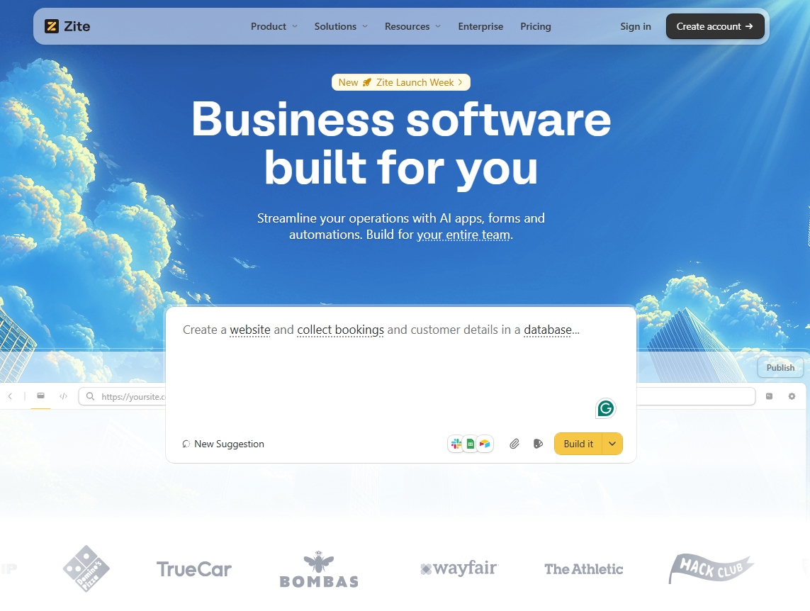 - Choose Zite if you're building business software and don’t want to touch code at any stage of the development process. You can build, debug, and maintain the app with prompts or by making direct changes visually. It’s genuinely no-code.