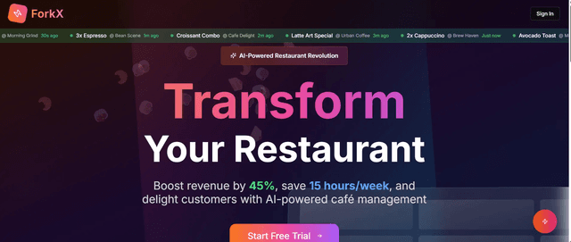 Perfect for showcasing real-world AI automation, data visualization, and workflow management in the food & hospitality industry. Fully remixable and ready to customize for cafés, cloud kitchens, or enterprise dining chains.